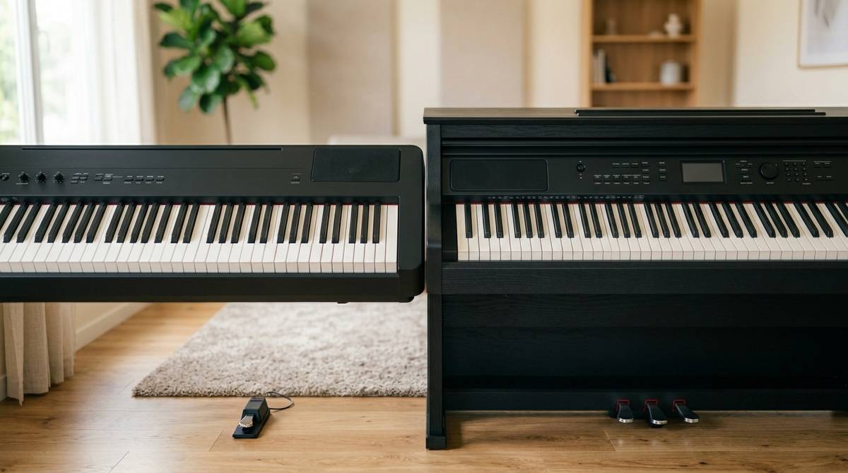 ヤマハは、ポータブル電子ピアノの先駆者的な存在であり、「Pシリーズ」は世界的なベストセラーとなっています。これらはテーブルの上に置くこともでき、専用スタンドを使えばスマートな外観を維持しつつ場所を取りません。一人暮らしの部屋や、限られたスペースに置きたい場合には、ヤマハのスリムな設計が大きなアドバンテージになります。軽量設計のモデルも多いため、部屋の模様替えの際にも移動が比較的容易です。